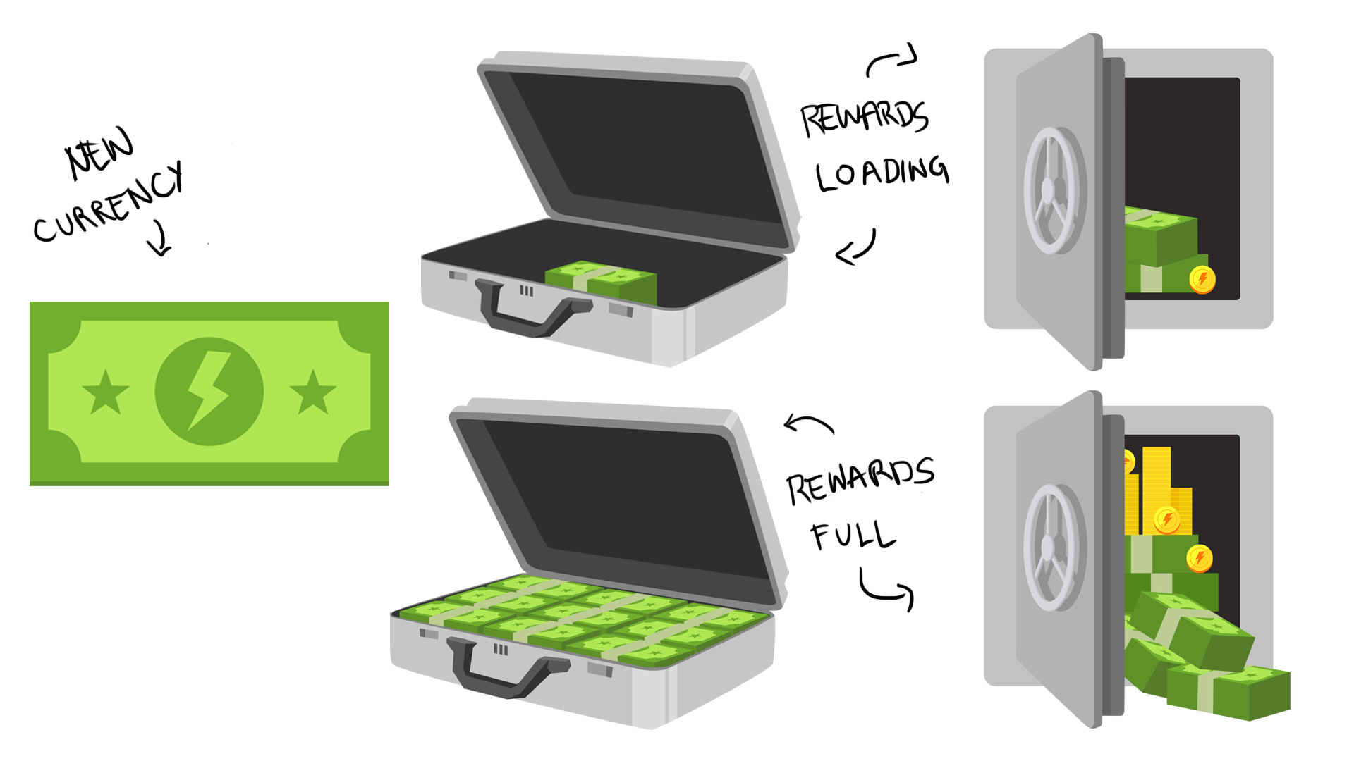 A few screen mockups I made for Power Up. Art direction by Paul Marshall. Game design by Kyle Elam.